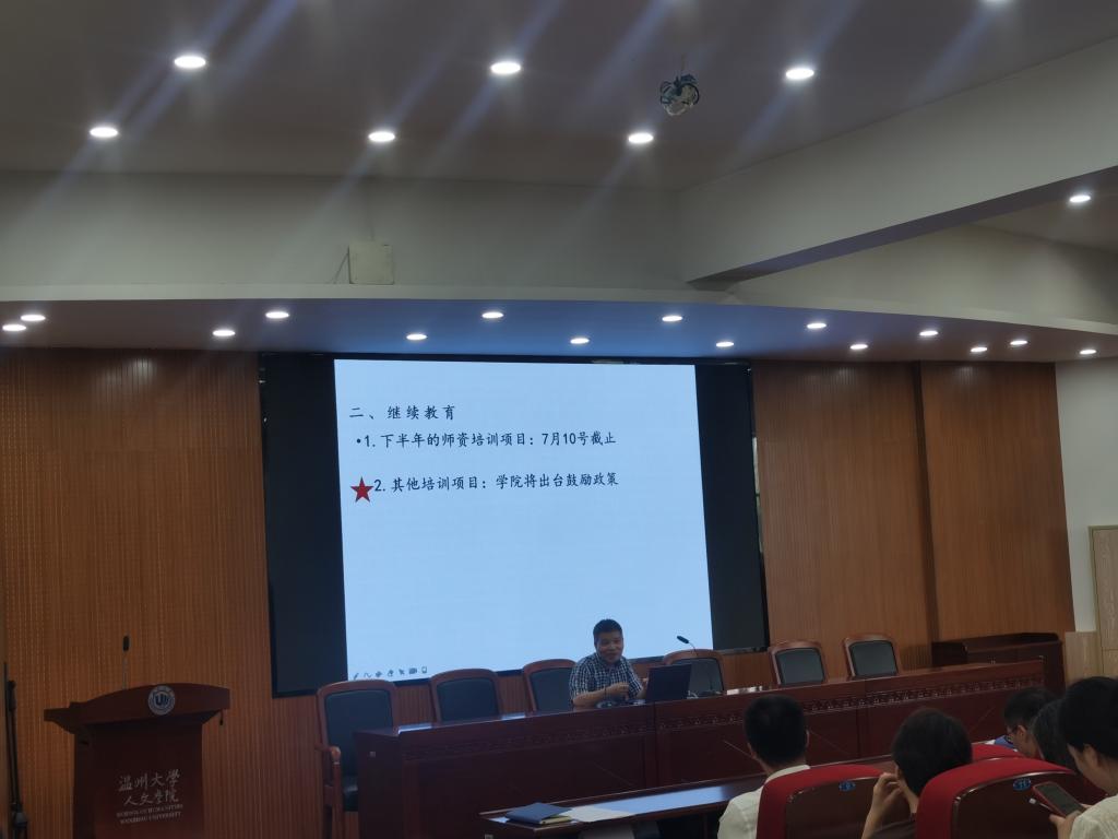 7月7日下午,人文公司期末教工大会在人文楼203会议室召开。公司领导班子,全体教职工参加会议。会议由公司党委书记江秀景同志主持。