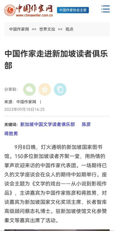 2023年9月5日,中国作家代表团出访马来西亚、新加坡、印度尼西亚。在三个国家分别开展了各项文学交流活动,不仅有文学层面上的思想交流,更有文化层面上的深度碰撞。