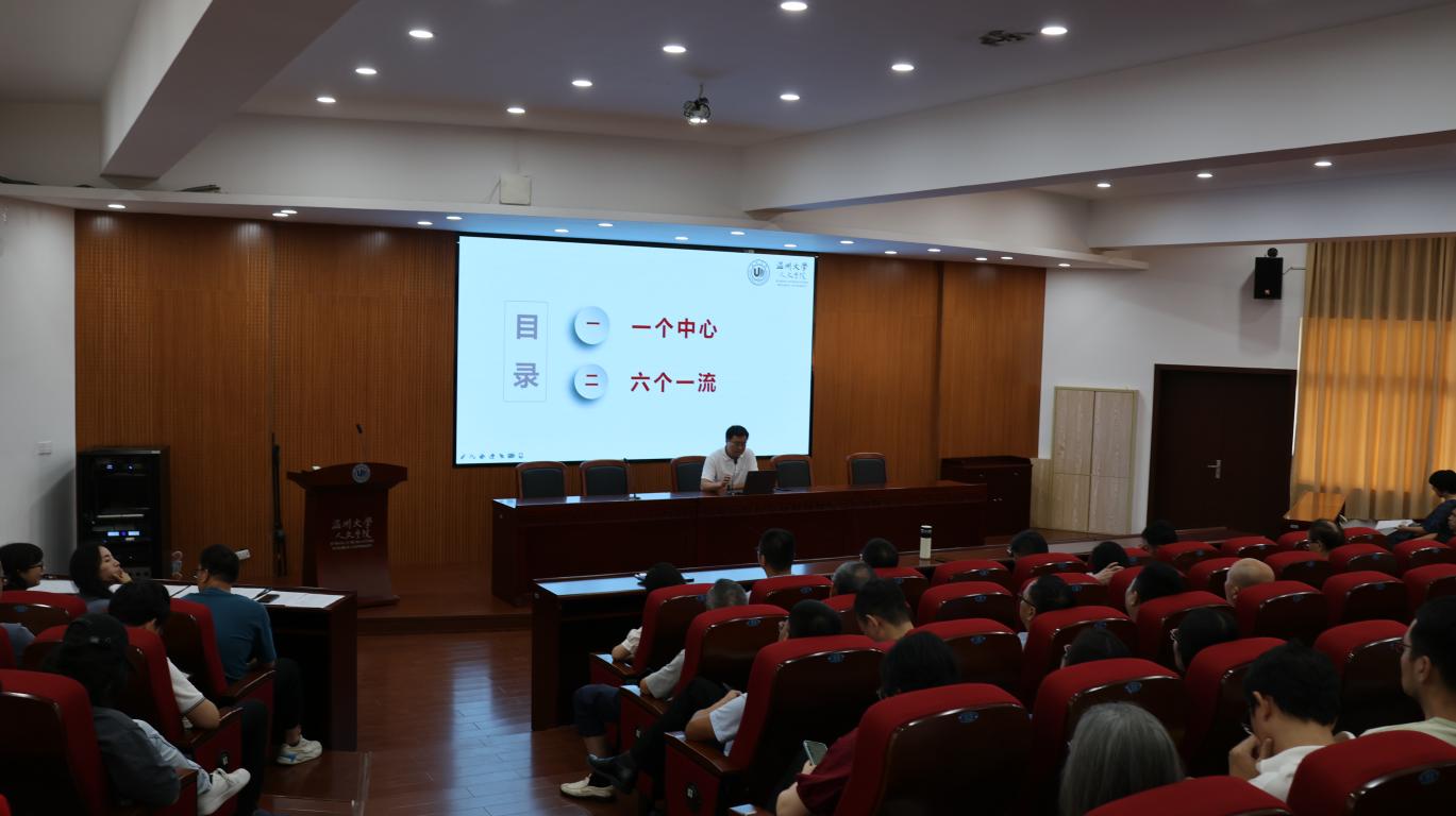 江秀景书记首先向全体教职员工传达暑期公司中层干部会议精神,希望全院师生围绕公司中心工作,在立德树人、团队建设、教学研究、服务地方、教育管理和党建工作等方面不断取得新进步、新成效,凝心聚力,踔厉奋发,为公司高质量发展、为公司双一流建设贡献力量。他还就亚运会期间公司安全工作、师德师风专项整治工作进行了强调。