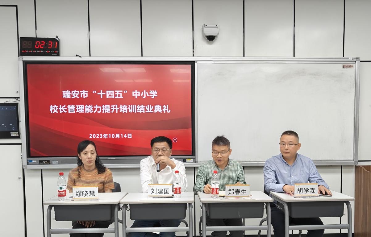 永利yl23411官网和瑞安市教育发展研究院都对本次活动高度重视。公司党委书记江秀景、瑞安市教育发展研究院经理章晖出席了开班仪式,永利yl23411官网副经理郑春生教授参加了结业典礼。永利yl23411官网培训中心主任刘建国教授、瑞安市教育发展研究院培训管理科胡学森科长和缪晓慧老师全程参与。