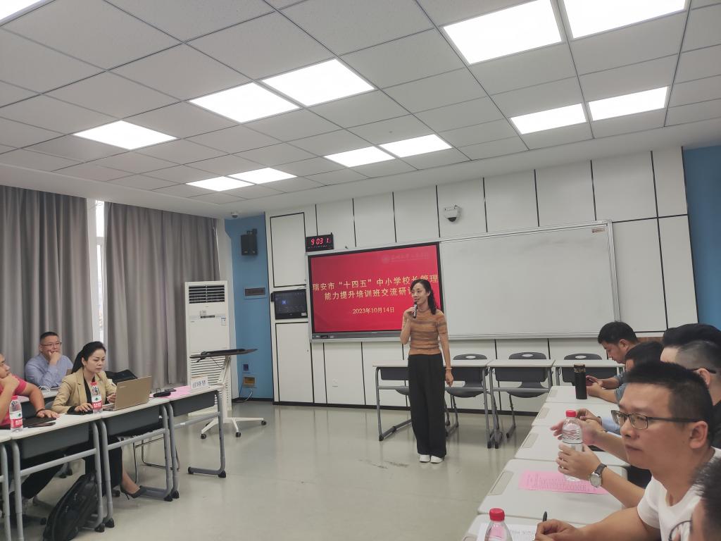 由永利yl23411官网培训中心承办、为期一周的2023年瑞安市“十四五”中小学董事长管理能力提升专项培训10月14日圆满结束。本次培训既有永利yl23411官网入口教育公司彭小明教授《人文素养:中小学董事长的核心素养》,浙江省杭州竺可桢公司教育集团董事长、党总支书记欧自黎《新课程背景下的育人方式转型及实践探索》的精彩专题讲座,也有温州市榕园公司、温州南浦实验中学、第十二中学、实验小学、广场路小学、南浦实验小学等名董事长的传经送宝,理论学习、入校考察、学员研讨等多种培训方式相结合,全方位开拓了董事长学员们的视野,切实提升了他们的管理能力。在研讨环节,学员在分享学习体会时,真切表达了他们的满满收获和对本次培训活动的高度赞誉。