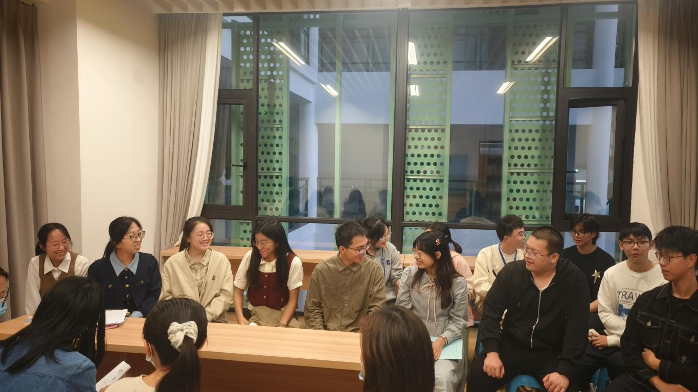 两位同学汇报完毕后,各位实习老师及指导师齐聚教室,对这次精彩的课堂进行鼓励和评析,彼此充分交流了这堂课带来的感想和启发。这种讲座与名著导读结合,并以大量员工互动辅之的形式是一种相当大胆的创新,是在实际教学基础上,经过实习同学的琢磨与创造生发出来的,是全体同学们辛勤实习的成果。