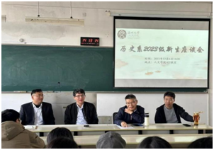12月6日下午2点,历史系于人文楼402召开了2023级新生座谈会,郑春生副经理、陈鸿超主任、冯高峰老师、张闻捷老师,以及20历史的梁列列同学、17历史21研究生的潘铁颖同学出席了本次座谈会,为新生交流解惑。