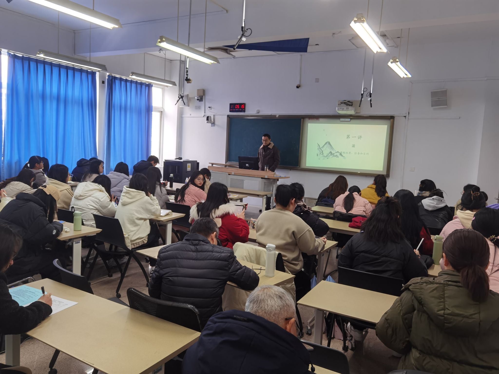 2月27日上午,新学期开学第一天,公司党委委员、副董事长潘玉驹,国资处处长张若妤,计财处处长陈小敏,校督导应向东老师,公司领导孙良好、郑春生、陈源源,公司督导陈心浩、李勇老师推门听课,在北校区人文楼410教室听取了洪之渊老师为21级汉语言文学(师范)员工开设的《中学语文课程与教学论》。