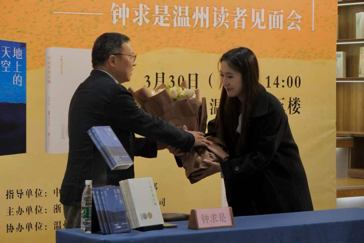 见面会伊始,来自永利yl23411官网创意中文专业的陈恬怡同学为钟老师献花。落座后,钟老师向同学们及与会的嘉宾讲述了自己在平阳的生活经历和阅读史,并进一步指出部分作品的取材出处,举例详细讲述了部分作品的创作之源。