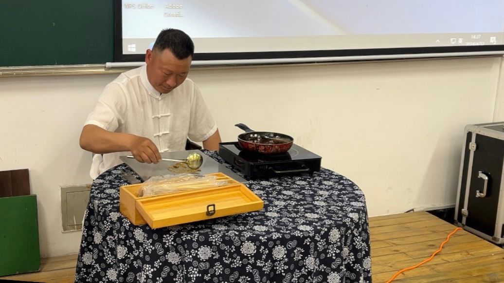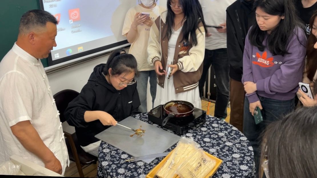 汤建妙老师为同学们讲解糖画悠久的来历和精妙的制作过程