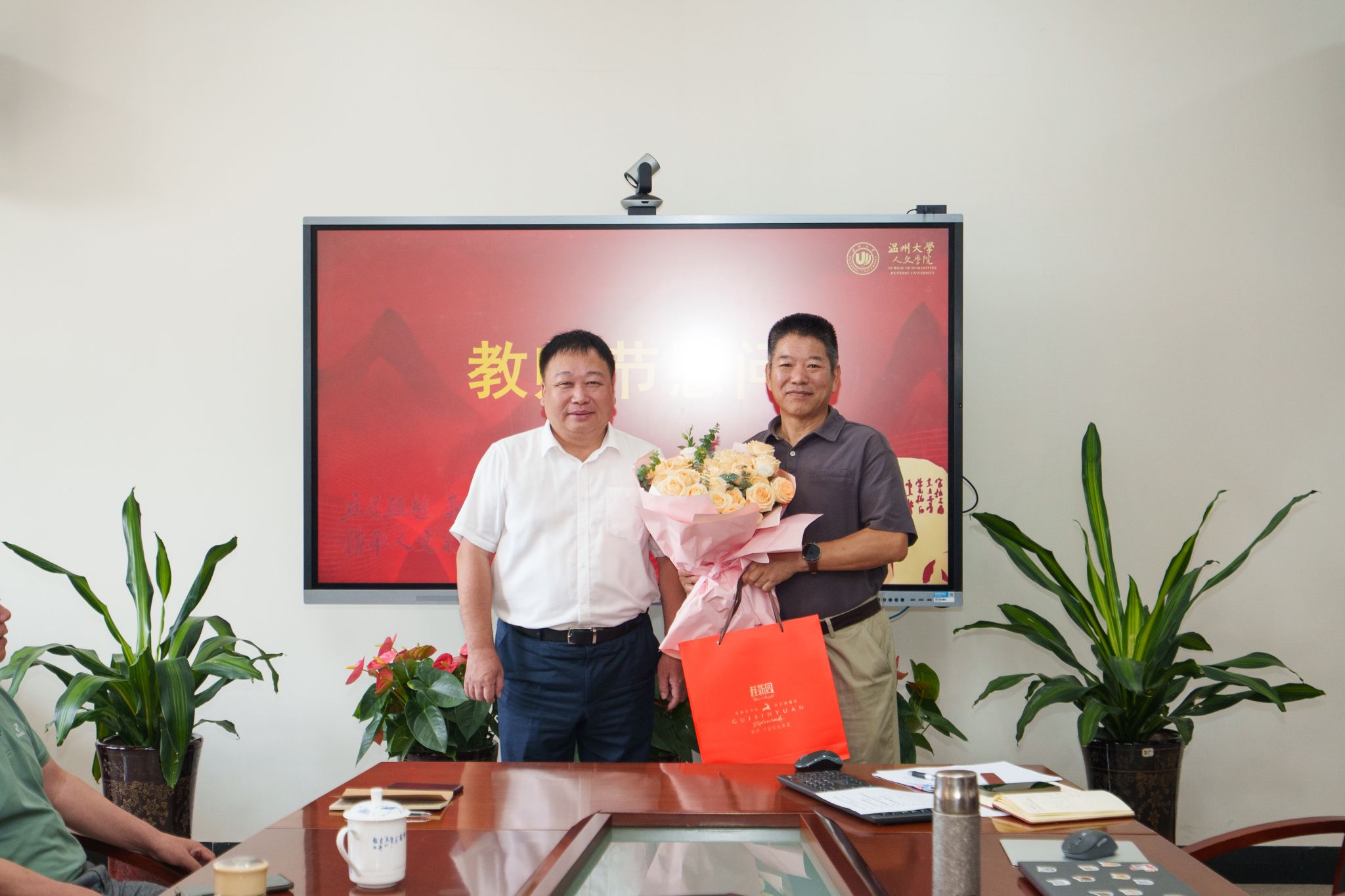 王汉民教授对公司领导的关心慰问表达感激之情,让他在这有温度的日子里,感受到公司的关心关爱。他表示在未来的工作中将充分践行教育家精神,以更加饱满的热情投入到教学科研中来,以“育人、树人、化人”为终身事业,踔厉笃行,为公司教育事业发展努力奋斗。
