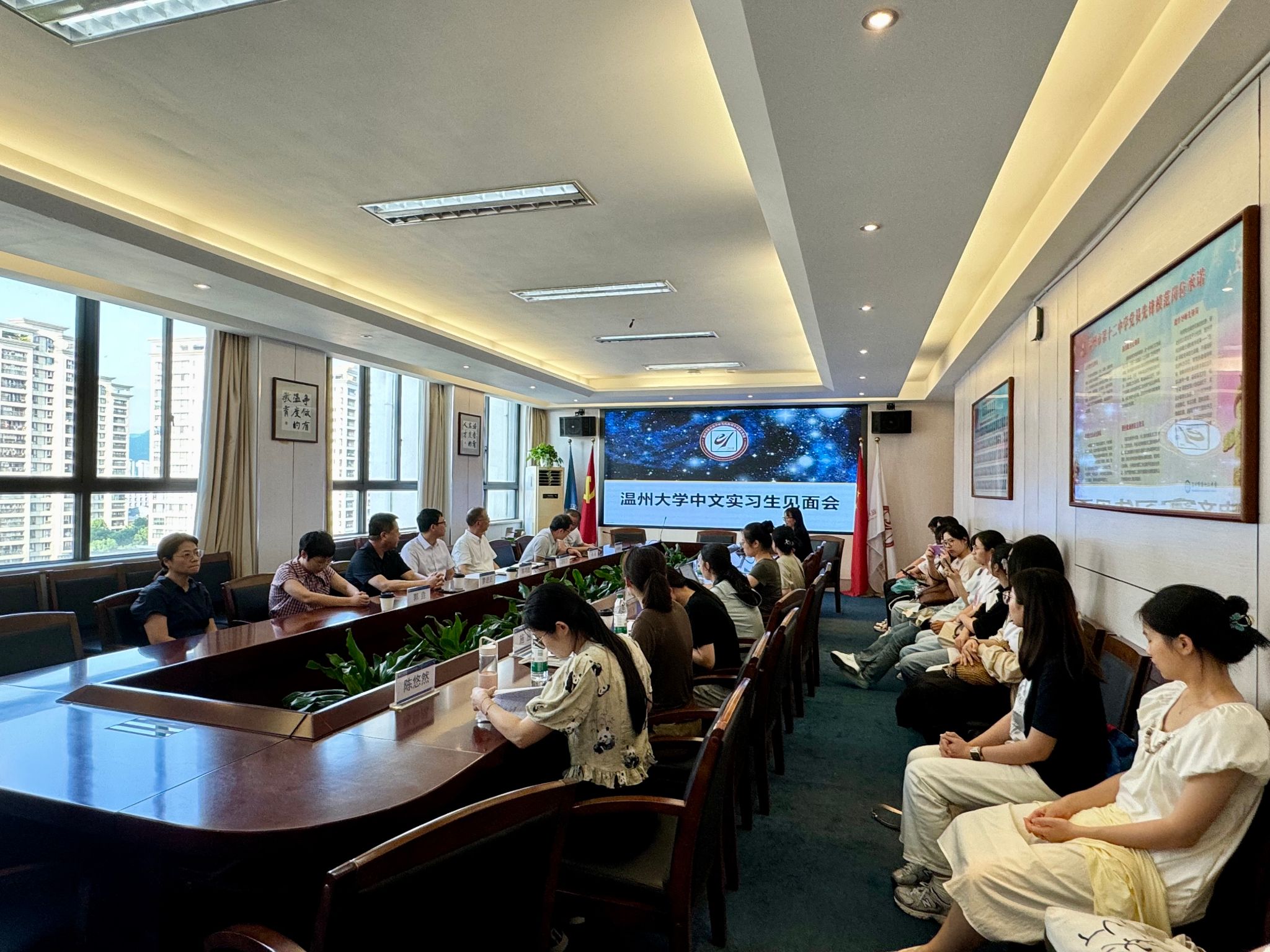 2024年9月9日下午16:00,温州市公司产品研究院附属公司教育集团公司路分校举行了永利yl23411官网21级汉语言文学(师范)专业教育实习见面会。会议上,集团校副董事长张政、副董事长邓权忠、八年级主任陈春棠、永利yl23411官网副经理陈鸿超、永利yl23411官网实习指导老师罗进近、郭垚,6位集团校指导老师,以及14位实习生共同参会,会议由集团校陈媛老师主持。
