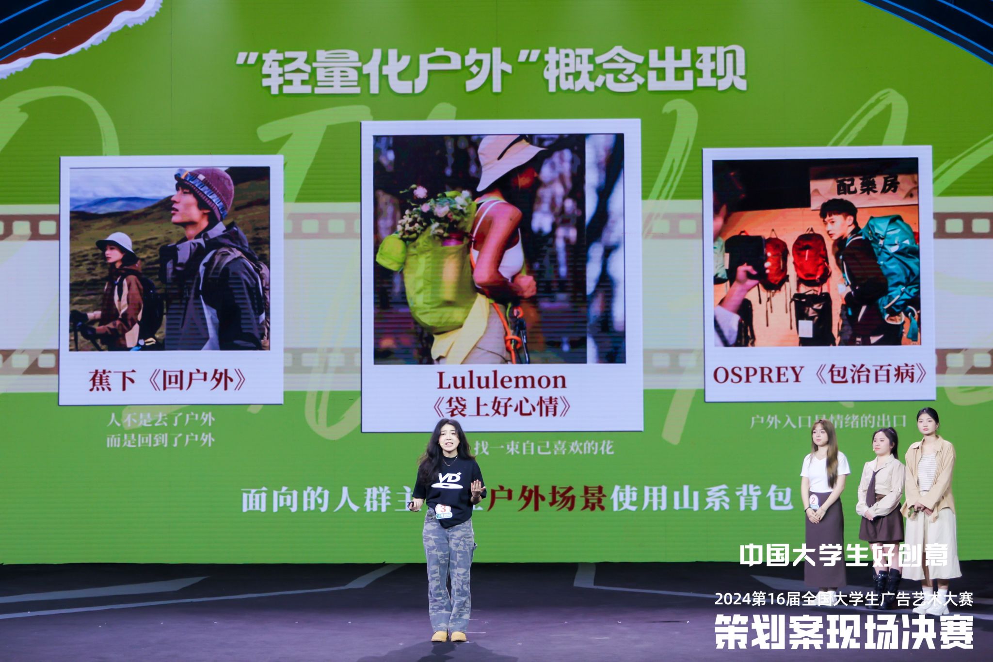 2024年9月7-8日,第16届全国老员工广告艺术大赛策划案现场提案决赛在北京东亿国际传媒产业园圆满落下帷幕,由永利yl23411官网广告系杨永晨、颜志香两位老师指导的爱华仕“山系”双肩包命题团队——广告专业2021级许佳丽、杨欣楠、刘欣和2022级罗冰晶四位同学,凭借独具创意的策划案《不在山里也要野》入围全国总决赛,经过现场提案的精彩表现和激烈角逐,继第14届、第15届分别以第2名的总成绩获得一等奖之后,温大广告学子在第16届全国老员工广告艺术大赛策划案现场提案决赛上再度斩获一等奖。