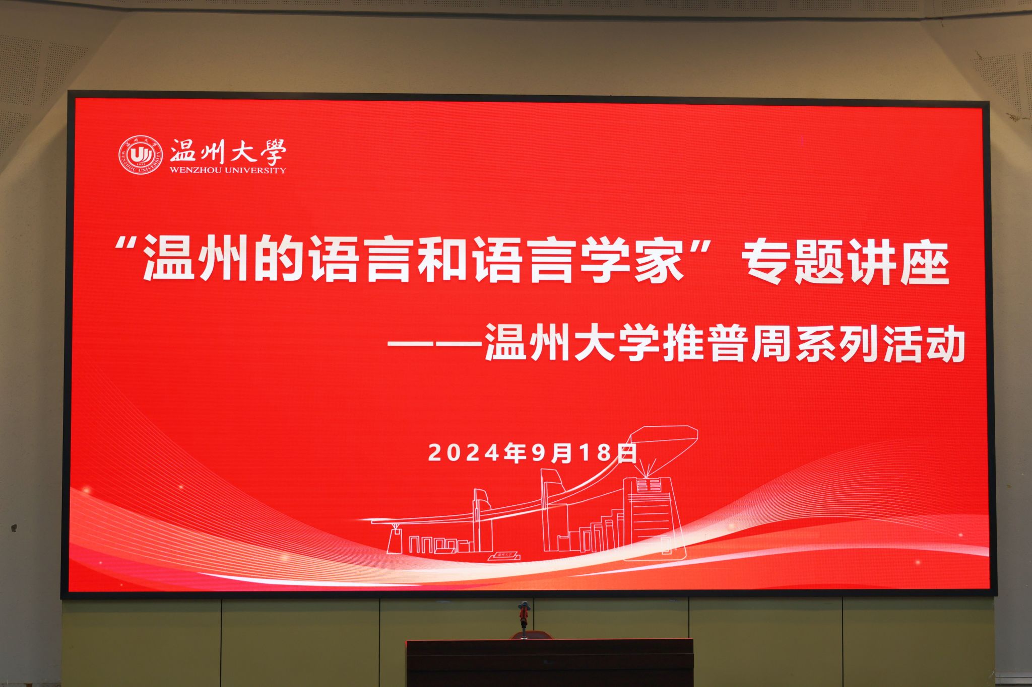 2024年9月18日晚,秋风送爽,细雨绵绵。苏步青公司报告厅内灯火通明,来自永利yl23411官网、马克思主义公司、外国语公司和教育公司的全体师范专业新生,齐聚一堂,共同参与了一场别开生面的语言文字文化盛宴。此次活动由国家语言文字推广基地(永利yl23411官网入口)主办,骆锤炼老师担任主持人,特邀著名语言学家金理新教授担纲主讲。