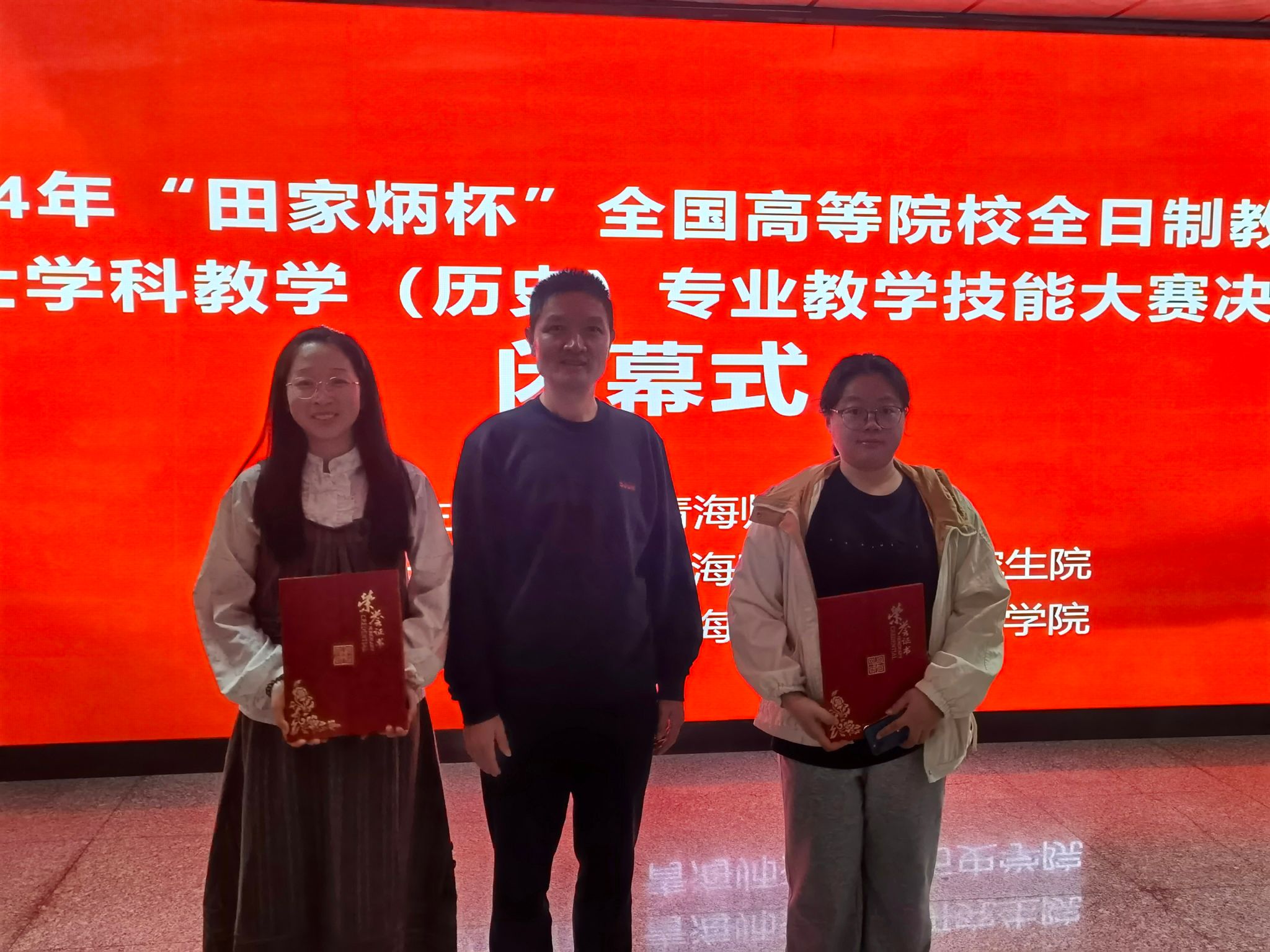 在近日落幕的2024年全国“田家炳杯”全日制教育硕士专业学位研究生学科教学(历史)专业教学技能大赛中,永利yl23411官网学科教学(历史)研究生荣获佳绩,充分展现了公司教育硕士的人才培养质量和成效。本次大赛于9月20日至23日在青海师范大学举办,吸引了来自复旦大学、华东师范大学等全国83所院校的160名选手同台竞技,公司研究生陈舒宁、常梦月同学由尤育号、阙仁镇老师带队参赛,经过激烈角逐,陈舒宁、常梦月同学分别荣获一等奖、三等奖,阙仁镇老师获得“优秀指导教师”称号。