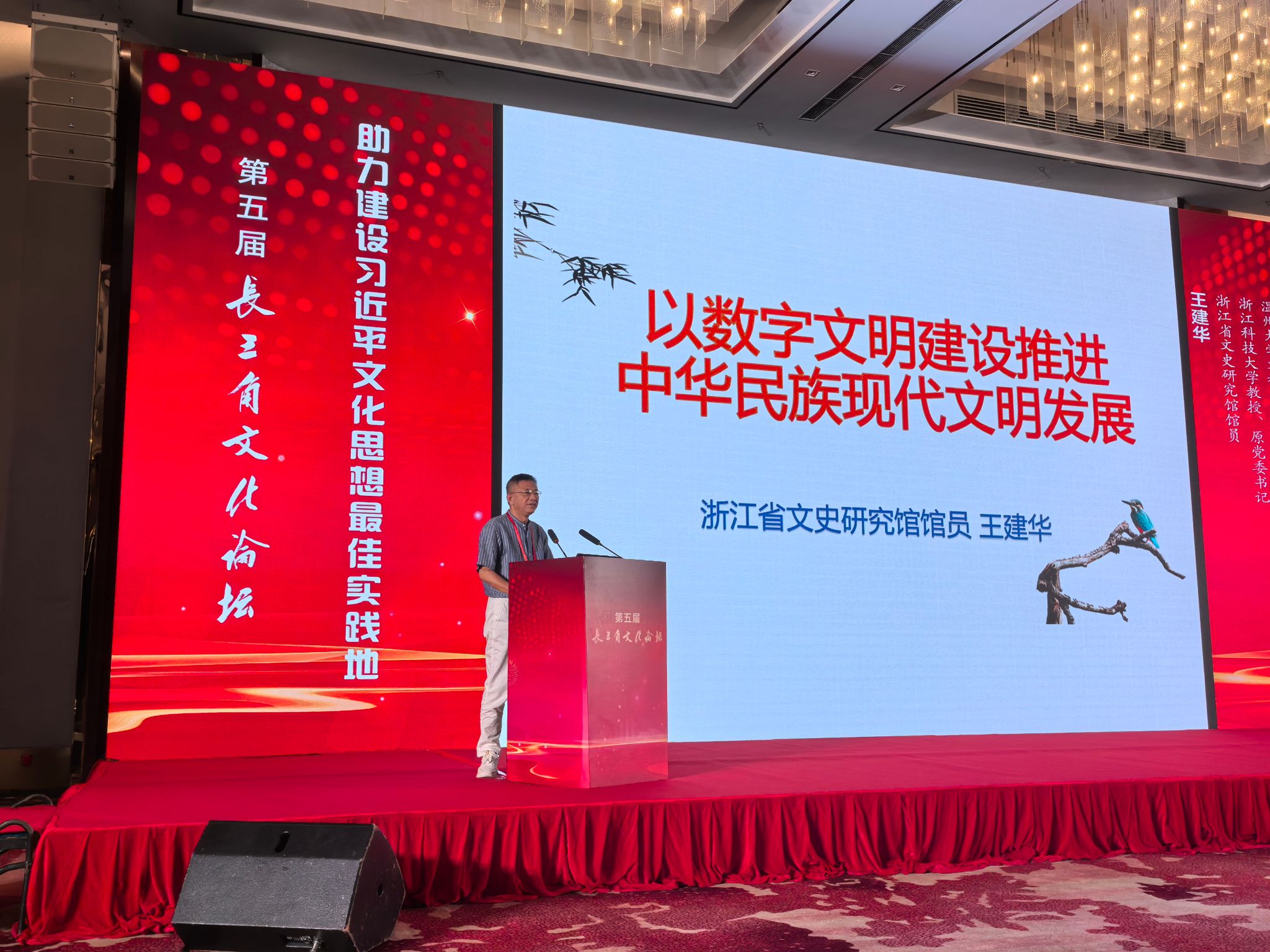 浙江省文史研究馆馆员、公司永利yl23411官网资深教授王建华老师应邀参加本次论坛,并在大会上作了《以数字文明建设推进中华民族现代文明发展》的主题演讲。王建华教授指出,数字文明是中华民族现代文明的重要组成部分,是具有时代特色的中华文明现代的新形态。数字文明建设将有力推进中华民族现代文明的发展。长期以来,浙江在数字化、数字文明建设方面成绩斐然,为探索中华民族现代文明做出了积极贡献。我们应立足于浙江实际,着眼数字文明建设的实际推进,展开不同维度的三个方面探索:首先是建设优秀的数字文明环境;其次是将数字新质生产力与精神文明融合;最后是着力提升网络主体的文明修养。王建华教授的报告引起了在座专家学者的极大兴趣和一致好评。