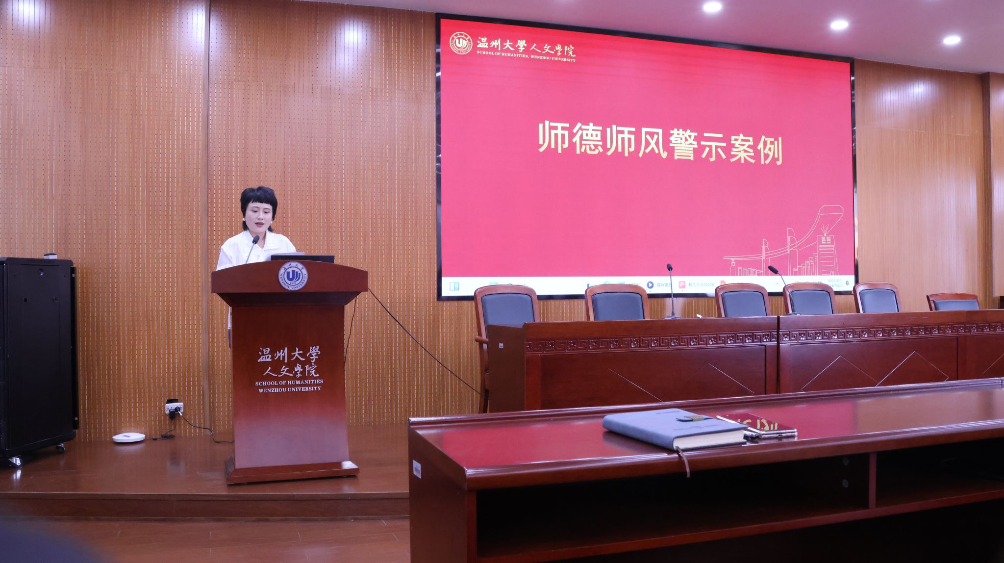 紧扣师德教育实施方案“五个一”活动之“组织一次警示教育”,黄玮副书记随后作了师德师风警示教育,通报了全国一系列违反师德师风的典型案例,警示每位教师要以案为镜,规范自身言行,自觉加强师德修养。同时,她还就近期员工工作、毕业生就业情况作了详细汇报,分析了当前员工工作的重点和难点,并提出了针对性的解决方案。