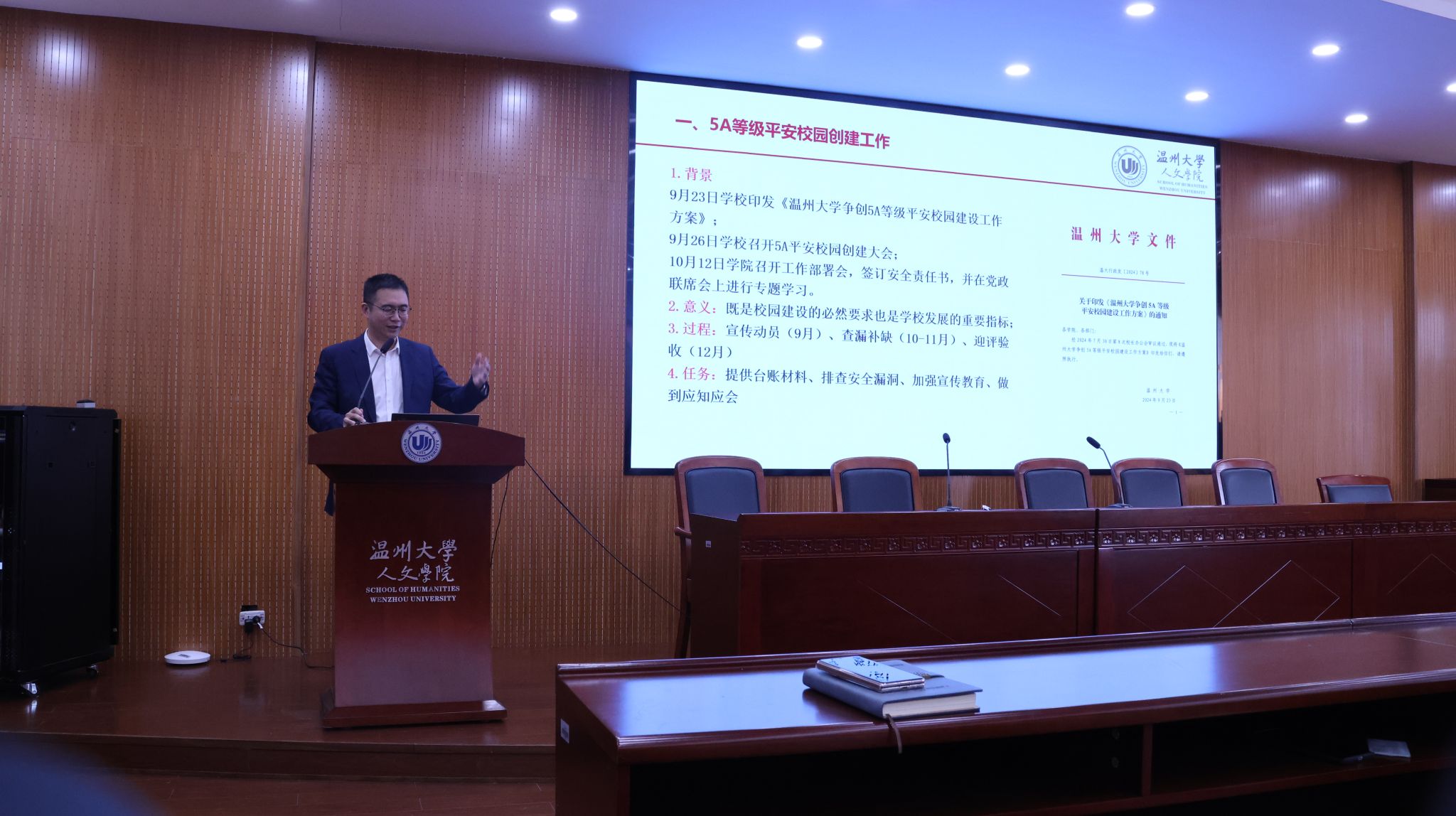随后,江书记就5A平安校园建设进行了详细讲解,强调了校园安全的重要性,特别提醒全体教职工要时刻保持警惕,关注员工的日常安全,确保员工在校园内的学习和生活能够顺利进行,并号召全体教职工共同参与到平安校园的建设中来。接着,他就校内岗位聘任、公司运动休闲区建设、科研用房等具体工作进行了部署。