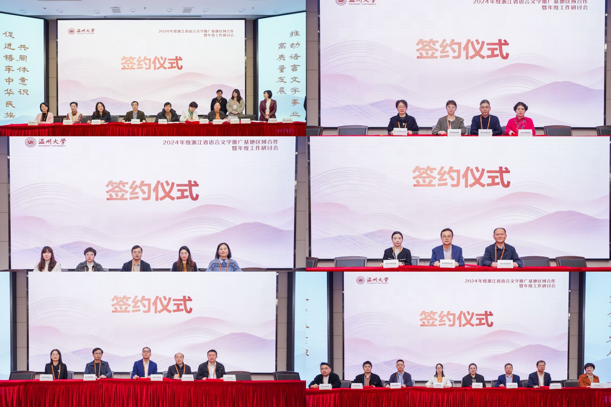 会上还举行了区域合作签约仪式,我省6家国推基地与各设区市教育局(语委办)、各高校省级基地签订协议,确立伙伴关系,在语言文字的品牌打造、传承推广、团队建设和社会实践等方面展开全方位的合作。
