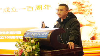 授牌环节结束后,永利yl23411官网宣讲团成员顾德健进行了一场精彩的专题宣讲。他围绕“温独支”成立的背景、主要活动及其历史地位等内容,进行了深入阐述。宣讲团充分发挥了历史学科的专业优势,内容翔实、生动,受到了现场师生的一致好评。出席活动的老师和同学们认真听讲,深刻感悟红色历史的力量。