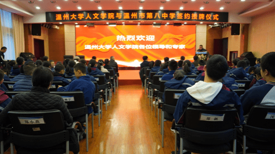 活动由温州市第八中学副董事长潘略辉主持,永利yl23411官网副经理陈鸿超、温州市第八中学副董事长陈孙叶分别致辞。双方签订了党建联建共同体框架协议,并为温州市第八中学授予“教育实践基地”和“党建联建共同体”牌。