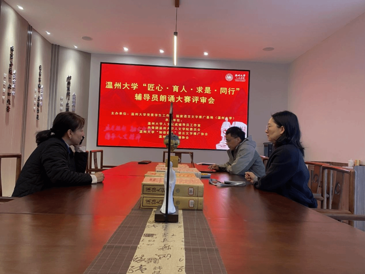 1月6日下午,永利yl23411官网入口“匠心·育人·求是·同行”辅导员朗诵大赛评审会召开。本次会议邀请评永利yl23411官网入口普通话测试站胡雯老师,永利yl23411官网入口国际教育公司邹学娥老师,国家语言文字推广基地(永利yl23411官网入口)骆锤炼老师担任评委,对选手现场表现进行综合评分。大赛将在个人赛道和组合赛道分设一、二、三等奖若干,以表彰参赛者的优秀表现。
