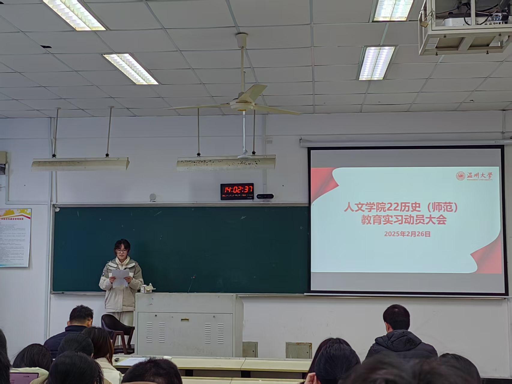 本次动员会通过系统部署与思想动员,为2022级历史学(师范)专业员工厘清实习目标、强化职业认同奠定了坚实基础。未来数月,学子们将奔赴各实习单位,以实践锤炼本领,用行动诠释师道传承。