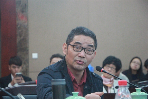 对话会一开始,主持人徐则臣依次介绍了各位著名作家们,得到了台下同学们一阵高过一阵的热烈掌声。简短的介绍结束后,立即进入了作家们分享经验的环节。首先发言的苏童先生,他笑称写短篇是一种病。文学是一个名利场,而写短篇的作家,相对而言,会离这个名利场远一点。最后,苏童先生引用了短篇小说巨匠契诃夫的一句话作结——短篇小说就是一个烟缸,看似普通,细想却意味深长。王祥夫先生则回忆了文革时期由一本末代皇帝溥仪的书所带来的剧烈的家庭变革。他的短篇小说多关注底层人民,贴近生活。他说,从前写短篇总想着把故事详细地告诉读者们,而现在,更倾向于“把故事藏起来”,留给读者自己去探索发现。马原先生的发言字里行间表露着对在场短篇圣手的欣赏之情。马先生在中年曾因身体原因隐退文坛20年,如今重拾短篇的他感慨良多。“写短篇是一件神圣的事”马原先生如是说。对话会最后,公司孙良好教授作了精简的总结,他表示作家的内心就是这个时代的进程。