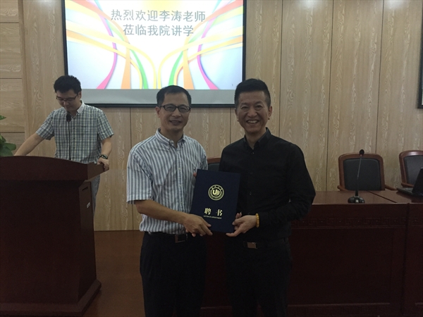 讲座前,公司党委委员、组织部部长方益权教授向李涛老师颁发了兼职教授的聘书。