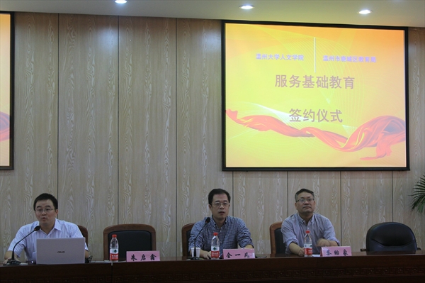 2015年9月23日14点,永利yl23411官网与温州市鹿城区教育局“服务基础教育”签约仪式人文楼院203教室顺利举行。永利yl23411官网经理蔡贻象、鹿城区教育局局长全一凡、公司党总支副书记朱启鑫、温州中小学董事长以及园长等参加了这次仪式。 本次活动主要分为签约仪式、启动仪式、颁发聘书以及经理讲话四个环节。在欢快的音乐中,蔡贻象经理和全一凡局长郑重地在文件上签字,交换文件并热情地握手。在启动仪式中,蔡经理与全局长将手触碰到水晶球上的那一刻,开启了永利yl23411官网与鹿城区教育局全面合作的序幕。全场响起了热烈的掌声。随后蔡经理为全一凡局长颁发聘书,聘任全局长为永利yl23411官网兼职研究员。最后蔡经理怀着激动的心情表达了对于本次合作的美好祝愿以及期望。