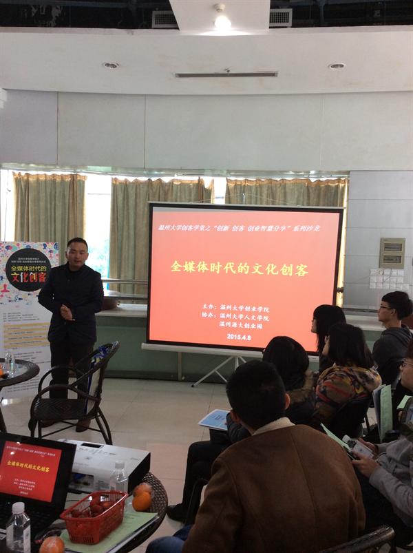 2015年4月8日下午2点,由永利yl23411官网入口创业公司主办、永利yl23411官网和温州源大创业园协办的创客学堂之创新.创客.创业智慧分享系列沙龙在永利yl23411官网入口众创空间隆重举行。本期创客沙龙的邀请嘉宾是永利yl23411官网入口创业公司副经理王佑镁教授、公司党总支书记吴静、公司广告教研室主任徐卫华副教授、温州好望角房产营销公司总经理季晓飞,沙龙由办公室主任施永川主持。公司的大广赛一等奖作品团队、一克拉工作室、“an cake”私家蛋糕定制工作室受邀参加沙龙进行展示。