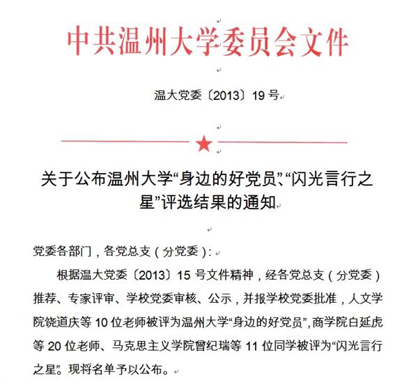 近日公司党委发文公布了永利yl23411官网入口“身边的好党员”、闪光言行之星评选结果。公司饶道庆老师荣获永利yl23411官网入口 “身边的好党员”荣誉称号,尤育号老师和薛蕾同学荣获永利yl23411官网入口“闪光言行之星” 荣誉称号。在本次评选中,全校共有10位老师被评为永利yl23411官网入口“身边的好党员”,有20名老师和10名员工被评为“闪光言行之星”。同时公司教工第四党支部获得永利yl23411官网入口第五轮支部建设创新活动培育项目。
