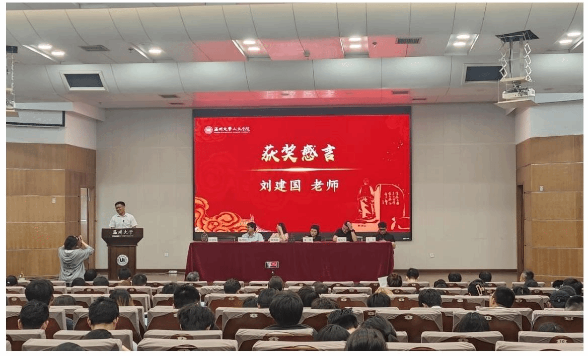 荣获教师特别贡献奖的刘建国老师发表获奖感言并向毕业生们给予临别赠言,希望大家保持 “重情大气” 的品格,营造和谐奋进的系风。