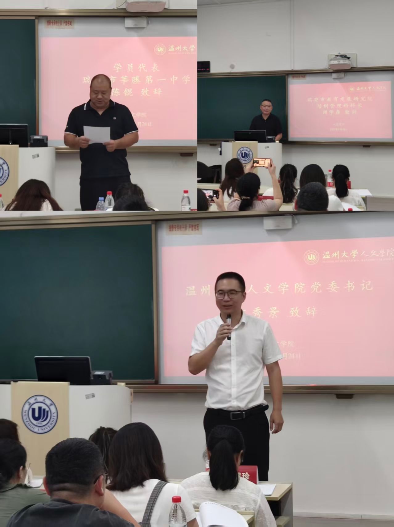 永利yl23411官网和瑞安市教育发展研究院都对本次活动高度重视。公司党委书记江秀景、瑞安市教育发展研究院培训管理科胡学森科长出席了开班仪式,永利yl23411官网副经理陈鸿超副教授参加了结业典礼,永利yl23411官网培训中心主任刘建国教授全程参与。