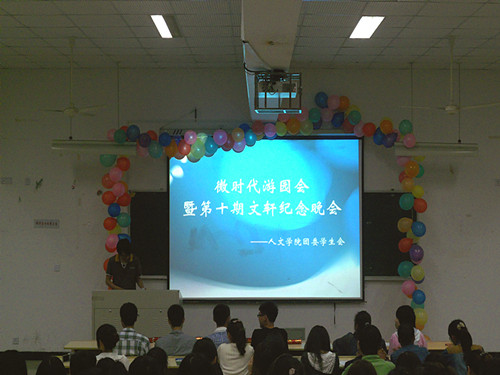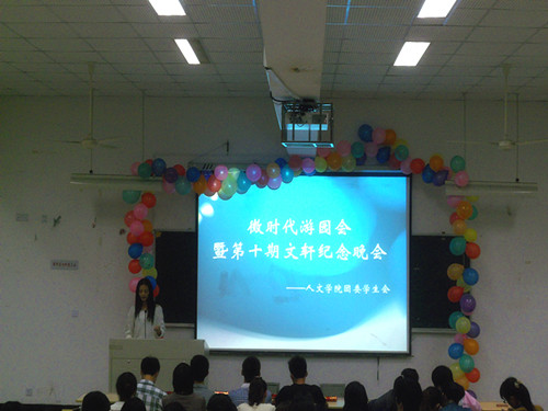 2012年5月20日晚上6点30分,在人文楼举行了"微时代"游园会,暨第十期《文轩》纪念晚会。永利yl23411官网员工辅导员麻法全老师和叶豪芳老师出席了本次游园会。本次纪念晚会由永利yl23411官网编辑部和组织部联合举办,大一大二各班各自承办了属于自己班级特色的游园项目。本次游园特邀校园媒体朋友过来参加,永利yl23411官网大一大二的同学也积极参加了这次游园活动。