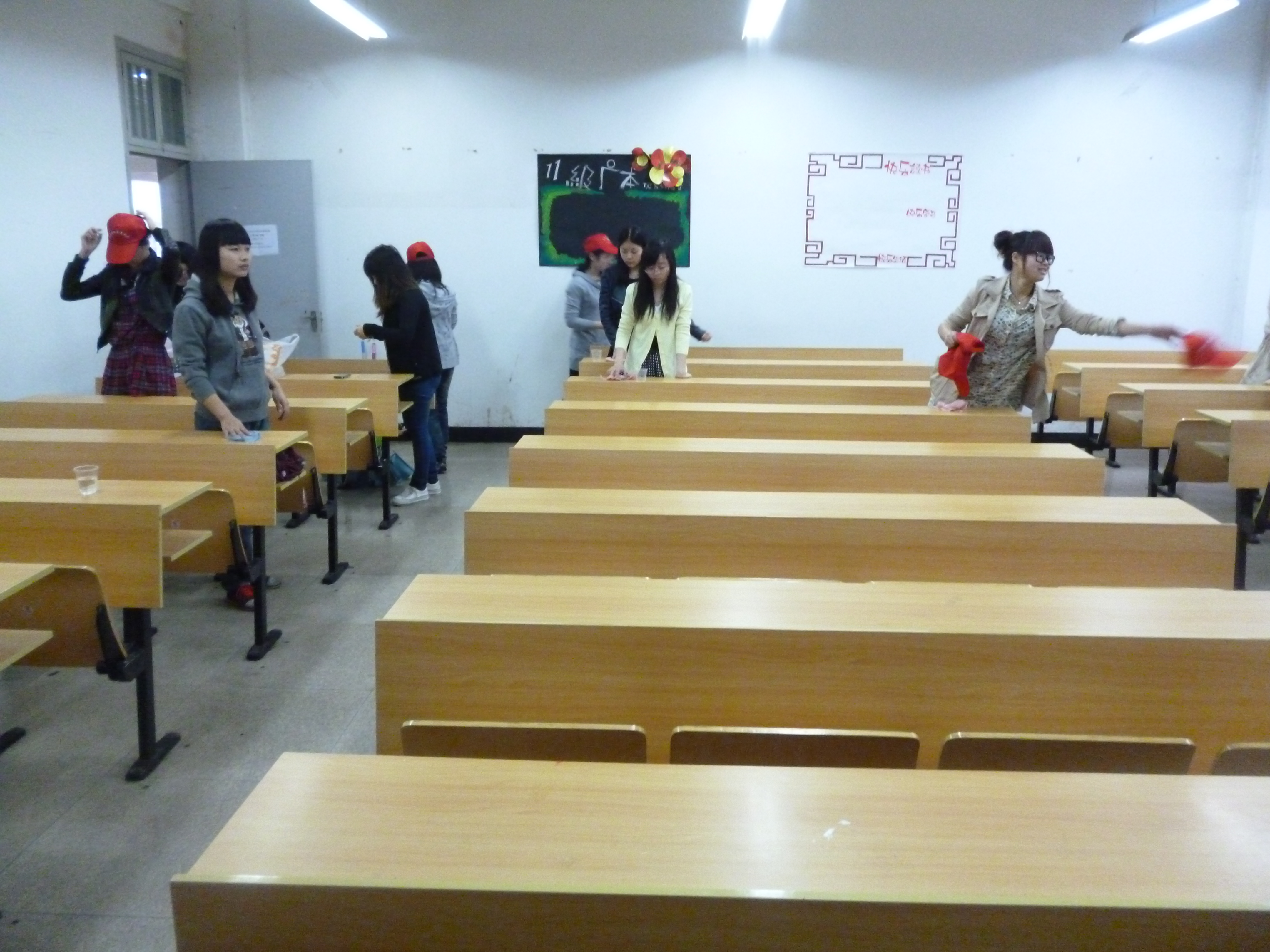 2012年4月14日8时,为进一步弘扬和落实贯彻党的为人民服务的精神和宗旨,公司党员之家组织了预备党员在北校人文楼清洗课桌的活动。此次活动共有12名预备党员积极参加。