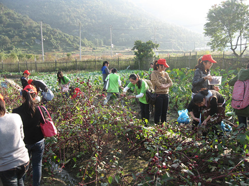 下午一点,便可以见到志愿者们在C区门口集合的身影,他们整装待发,迫不及待地想要见到丽岙小学的小朋友们。大约一个小时的车程以后,志愿者们到达目的地见到了那群活跃的小精灵们。因为到达公司比较早,小朋友们仍在上课,志愿者们便主动提议,想帮公司做些另外的事来奉献自己的力量。巧的是,公司这几天正忙于果蔬采摘,志愿者们纷纷想去实践一下。在公司老师的带领下,志愿者们来到实验基地,帮助公司采摘一种名叫"红桃K"的果实与大芋头,既减轻了公司相关人员的工作负担,对于志愿者们来说,又获得了一种乐趣,一种新的体验。最后,志愿者们分成三队,每队约12人,来到四、五年级的三个班中分别开展有关感恩节、消防日、记者日的主题班会。上课过程中,小朋友们的纯真、热情以及"小老师们"的努力、亲和、热情使整个课堂气氛十分和谐,所有人都洋溢着幸福的笑容。活动一直持续到下午五点,当志愿者们不得不踏上回公司的路时,都依依不舍地与可爱的小朋友们挥手告别。也许活动对于志愿者们来说并不算很长,而产生于活动之中的情感却是无比的真实和感人,这份感动也往往只能在亲身体验之后才会真正懂得。暮秋的傍晚显得有些萧瑟,而志愿者们的心里却是暖洋洋的。再见,再见,丽岙三小。