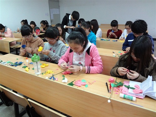 2011年11月9日1点30分,永利yl23411官网一周一课的手艺培训班照常进行。讲师茅静飞与学员们在人文楼102教室,共同演绎了一场浪漫的纸玫瑰制作秀。