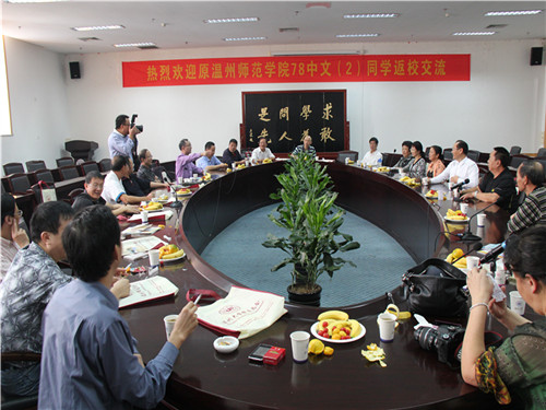 10月15日上午9点30分,原温州师范专科公司78级中文(2)班同学交流会活动在永利yl23411官网入口会展中心白鹿厅举行。现任苍南龙港高级中学董事长余贤庆、瑞安市教育局副局长曾定煜、宁波宁海县中学老师、全国优秀教师葛明霞,永利yl23411官网入口瓯江公司党委书记赖学军等30多名员工参加了此次活动。