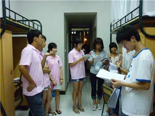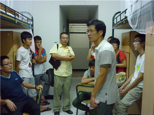 9月8日晚上6点30分,永利yl23411官网各领导、班主任与团委员工会的成员进行了下寝室看新生的活动,为宿舍区添了一丝温情热闹。永利yl23411官网经理丁治民、党总支书记周剑平、副经理饶道庆、刘建国、党总支副书记骆锤炼、教学科科长杨秀华、员工科副科长曾蓓蕾以及各新生班主任、员工科辅导员、小班、团委员工会成员等都参与到本次活动中。