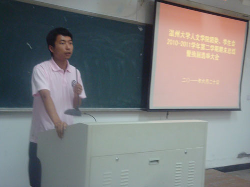 首先由员工会主席陈辉宣布此次大会的各项议程,大会将重点讨论这一学期以来员工工作的进程,需要解决的问题和关于换届人员安排的相关事宜。大会伊始,每位部长针对本部门在这一学期以来工作中的进展做了简要总结,大家共同反思一起讨论为这一学期的辛苦工作画上了一个圆满的句号。接着五位主席团成员轮流发表讲话,在员工会工作的几年他们每个人都付出了很多。回忆中有苦也有甜,有欢笑也有泪水,从他们的收获与成长中,我们也看到了团委员工会这个大家庭在一步步走向成熟,变得更加优秀。紧接着其他团学干部怀着真挚的感情,表达了在团委员工会工作的这段时间的感想和体悟,台下掌声不断,气氛感人。最后麻老师宣读了下学期团委员工会的改革方案以及具体的人员安排。