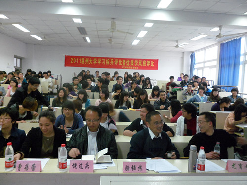 2011年4月22日15点30分,永利yl23411官网入口学习标兵评比暨优良学风班评比活动于人文楼202教室举行。出席该活动的有永利yl23411官网副经理饶道庆、党总支副书记骆锤炼、员工科副科长曾蓓蕾、辅导员叶豪芳和09历本班主任尤育号。永利yl23411官网员工代表作为大众评委积极参与。