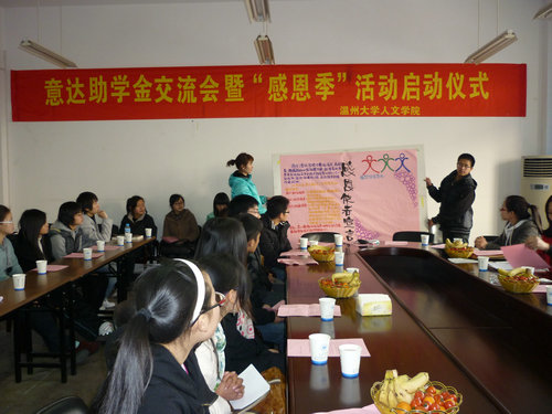 3月4日下午3点整,永利yl23411官网意达助学金交流会暨“感恩季”活动启动仪式在人文楼311会议室正式展开。出席该会议的有来自意达进出口公司的王董事长及相关组织人员,公司党总支副书记骆锤炼老师、员工科副科长曾蓓蕾老师、辅导员叶豪芳老师与各受助员工也都参加了此次活动。