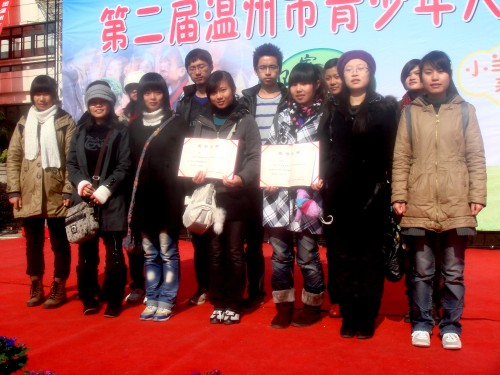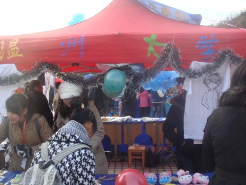 紧张有序的场地布置后,上午9:00,活动正式开始。人声鼎沸是对这次活动过程的最好描述。大家都积极地推荐着自己铺位的商品。公司进驻的场地是"梦想、创意一条街",跳蚤协会的成员们充分发挥自身优势,带来了大量出自于员工之手的商品,充满着属于温大学子的创意和思想。有野逸书画协会的书法作品,飘逸俊秀;有美术公司的油画作品,栩栩如生;有建工公司的火材模型,精巧细致;有手工协会的石画纸花,隽秀灵巧......很快,这些别具特色的商品吸引了不少顾客的眼球,再加上成员们卖力热情的宣传,许多商品很快被销售一空。活动一直持续到11:00。活动最后,跳蚤协会凭借不俗的成绩为公司荣获了"爱心市场小旺铺"和"最佳组织奖"两个奖项。