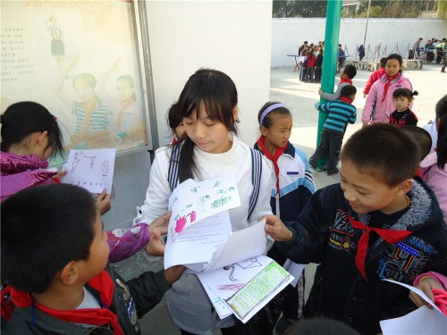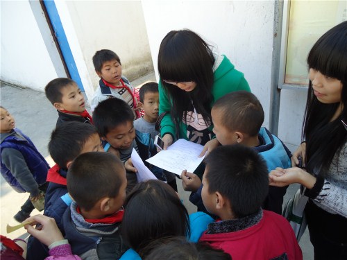 14点左右,孩子们来到操场。志愿者们分成几个小组分头行动,首先是给孩子们分发消防知识的传单,之后志愿者们通过简短的询问和讲演吸引小朋友们参加到自己的组内参加活动。整个支教活动包括两个环节,首先是给孩子们讲解消防知识,然后是通过游戏进行有奖问答。其中最受员工欢迎的无疑是“踩报纸”的游戏环节了,每个组的孩子们都很兴奋,希望通过自己的努力成为最后还站在报纸上的那个人。这次志愿活动一直持续到4:30才圆满结束。