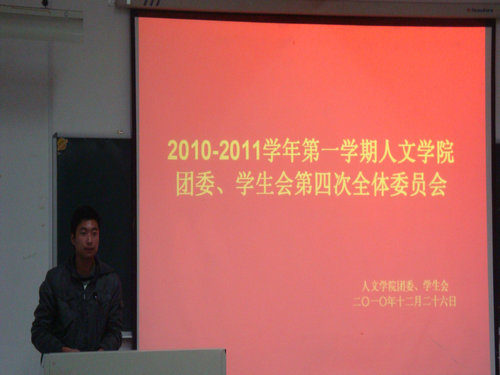 12月26日晚6点半,2010-2011学年第一学期永利yl23411官网团委、员工会第四次全体委员会在1-101教室准时举行。永利yl23411官网辅导员麻法全与院团委、员工会全体成员出席了本次会议。