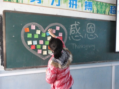 经过一段车程后,志愿者们步行到丽岙三小。小朋友们已早早的坐在教室里等待着大哥哥、大姐姐的到来。活动分成三个部分。首先是由王琳琳同学为小朋友们讲解感恩节的由来、习俗、特色等,并让小朋友们将自己想要感谢的话语写在便签上,然后贴在心愿墙上。第二部分是感恩祖国。由志愿者向小朋友们再现祖国的辉煌时刻以及讲述可爱军人的感人故事。这个环节中小朋友们积极发言,大声地讲出了想要对军人说的话。普通而真挚的话语感动了在场的每一个人。活动的最后一个环节是大家动手做笔筒,送给敬爱的老师。志愿者与小朋友们分成七组,大家齐心协力,充分发挥想象力及创造力,制作出了一个个精美而独特的笔筒,受到老师们的高度评价。整个活动中志愿者们分工明确,流程井然有序。