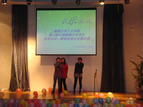 11月21日6点,永利yl23411官网第三届公寓影视文化节之“长乐未央”影视金曲小合唱于老员工活动中心多功能厅举行。永利yl23411官网员工科副科长曾蓓蕾老师、原音乐公司员工会文娱部部长刘甫、永利yl23411官网员工会副主席相孝锟担任比赛评委。辅导员麻法全老师、叶豪芳老师,永利yl23411官网员工会副主席范骏、黄凤燕等出席该比赛。