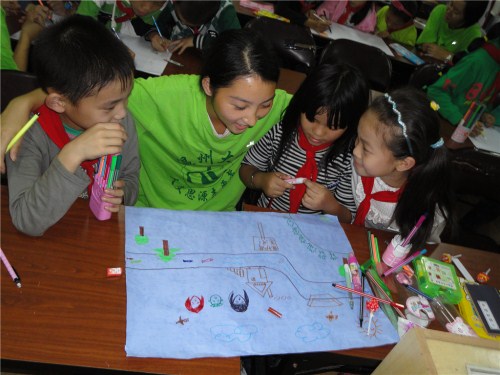 活动在小朋友的掌声中开始,首先主持人问了些关于母亲河的问题,从而自然过渡到今天的主题,保护我们温州的母亲河--温瑞塘河。紧接着主持人在与小朋友们互动中讲解了许多关于温瑞塘河的现状及问题、保护措施等,让孩子们认识到保护塘河的重要性和方法。其间志愿者和小朋友进行了有趣的互动游戏,在愉快的气氛中与孩子们沟通交流。最后,小朋友们分组画画,画出自己心目中母亲河的模样。天马行空的想法和对母亲河的真挚祝愿跃然纸上。