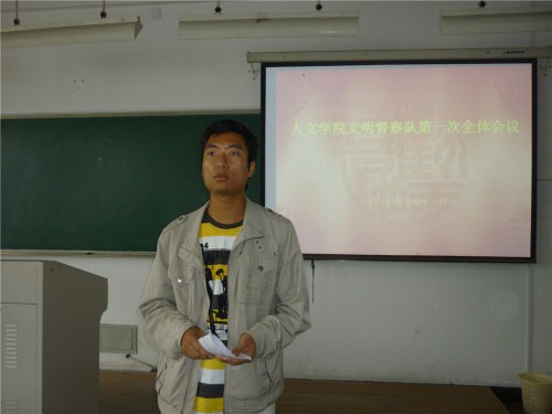 2010年10月11日中午12点50分,永利yl23411官网文明督察队第一次全体会议在人文楼202教室举行。本次会议由永利yl23411官网员工会主席陈辉同学、永利yl23411官网文明督察队队长杨斐同学主持,文明督察队新成员共同参与。