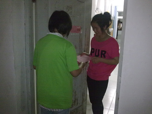 晚上9点,志愿者在C区凉亭集合。人文思源青年志愿者协会干事就相关事宜对志愿者进行了布置和说明。随后,志愿者便到相应的永利yl23411官网大四寝室进行宣传。一方面通过宣传单进行宣传,积极响应校青年志愿者服务中心的活动;另一方面通过语言的交流来宣传"两项计划",为大四同学讲解 "两项计划"的相关政策及注意事项,让有意向的同学坚定了服务"两项计划"的决心。
