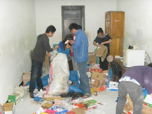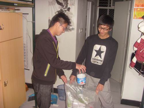 志愿者们分成五组,拿好环保袋前往责任寝室,回收废旧纸张、废旧塑料瓶等。寝室同学都十分配合,活动成果颇丰。这次活动还特别回收了废旧衣服,为即将要在丽岙一小开展的兴趣小组培训班提供了活动材料。最后,志愿者们将废旧物品分类整理,活动圆满结束。
