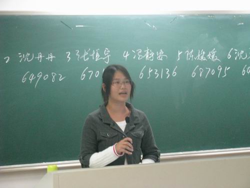 18:30,朗诵演讲决赛正式开始。此次决赛分为两个环节:自由演讲和即兴演讲,评委根据这两个环节为选手打分。选手们依次上台演讲。经过上周激烈的预赛角逐后,最终进入本次决赛的共有八位选手。在自由演讲环节中,选手们或激情澎湃,或睿智冷静,或深沉含蓄,展示了当代老员工的青春和热情。选手们通过声情并茂的朗诵演讲描绘了祖国60年的风雨兼程,我们聆听了她昔日的苦难,更见证了她今日的强大。作品中融注了选手们无限的爱国情思和热血希望。即兴演讲环节更是精彩,它考验了选手们的临场应变能力和语言表达能力。选手们的精彩表现博得了阵阵掌声。在热烈的气氛中,八位选手演讲结束,魏成春副书记为同学们作了简单点评,他谈及了朗诵演讲时应关注的几个方面,具体包括手势、感情、礼仪等,并解释了朗诵和演讲的不同点,使同学们获益匪浅。最终,08中本一班冯静安同学夺冠并获得“最佳人气奖”,沈晓娟和沈琴同学分别取得第二和第三名。