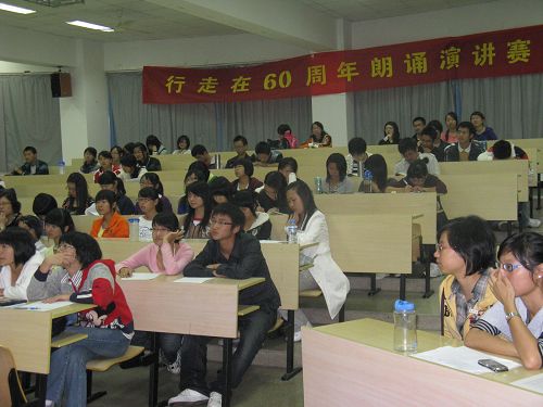 2009年11月5日,永利yl23411官网以“行走在60周年”为主题的朗诵演讲赛在人文楼203教室举行。北校广播台前任播音部部长王玮、《温大青年》主编姚嘉雯、永利yl23411官网员工会主席吴剑波担任本次比赛的评委。